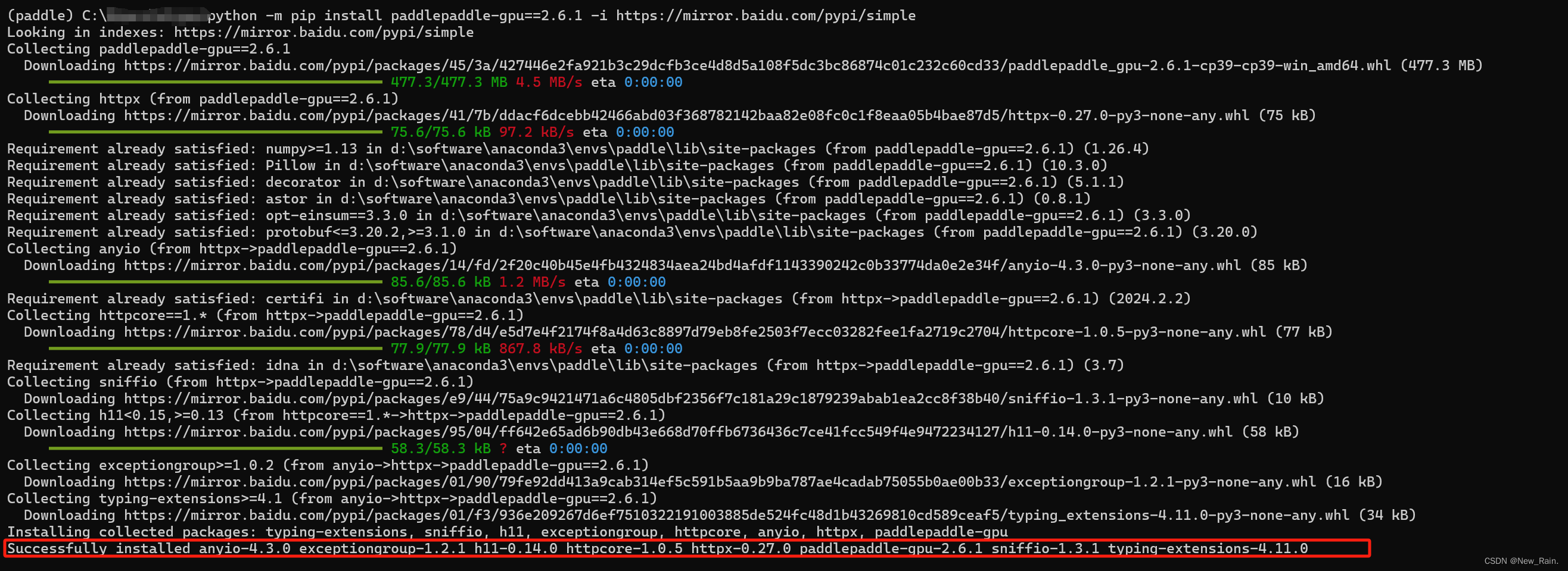 但是要注意paddle版本和CUDA版本相匹配,CUDA11.8就选择对应的paddle。