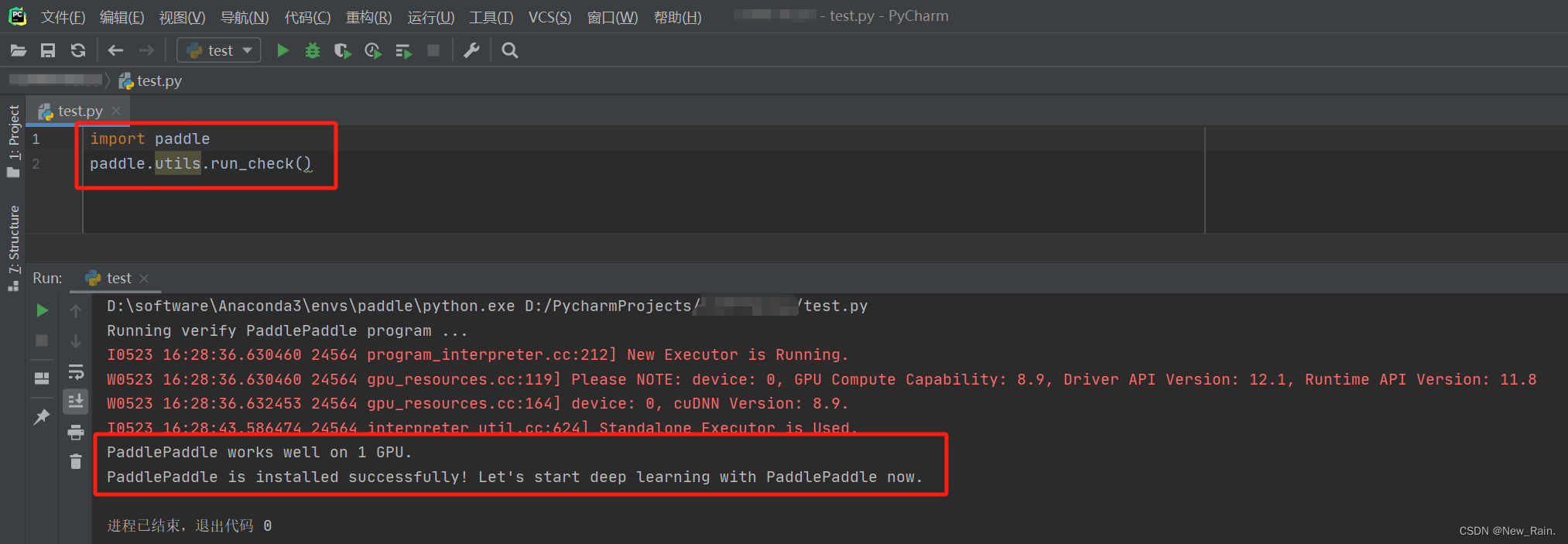 新建test.py,导入import paddle,再验证,如下所示为成功:
