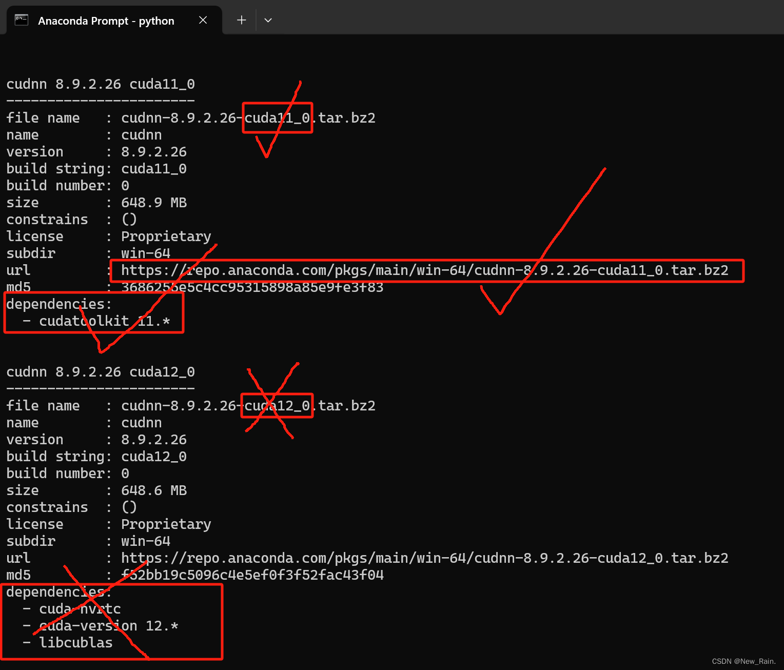 同CUDA一样,首先查询源内所有的cudnn 版本,以及下载地址: