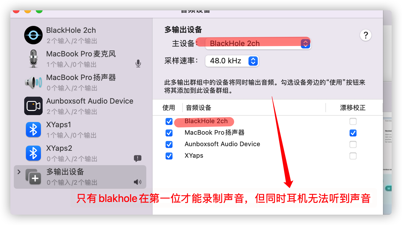 macOS使用BlackHole录制系统声音 M1芯片不支持sound flower使用blackhole只能从录制系统声音(录的时候本人听不到)和不录制系统声音(录的时候本人能听到)二选一。12注意:更改HIDI设置后,同时也要重新操作声音设置一次。...
