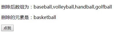x.innerHTML = "删除后数组为:" + Sports;