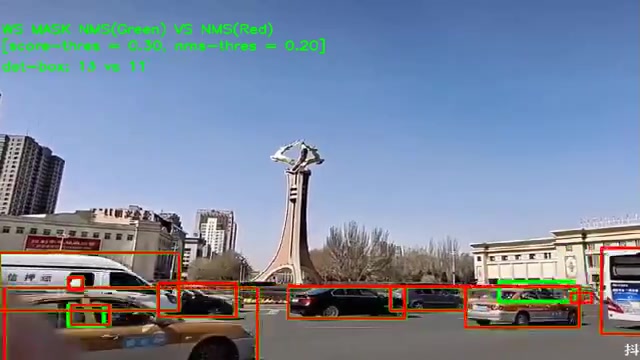 本文全网首次提出一种ws mask nms方法: 利用MASK掩膜信息,进行IOU计算,并给出线性和高斯的评估函数, 相比于传统的NMS或者poly-nms,本方法更加简单有效、实用。