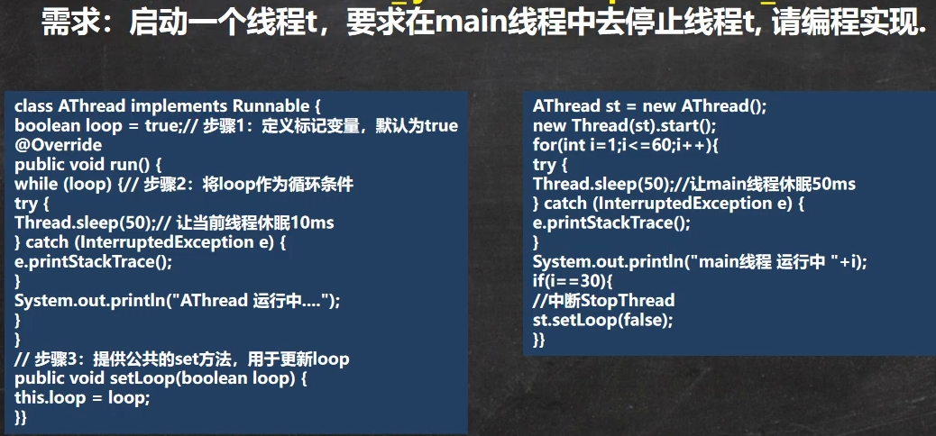 //如果希望main线程去控制t1线程的终止,必须可以修改 loop(设置一个set方法)