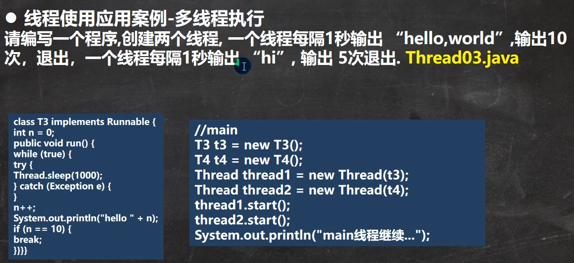 //说明:当main线程启动一个子线程后,主线程不会阻塞,会继续执行