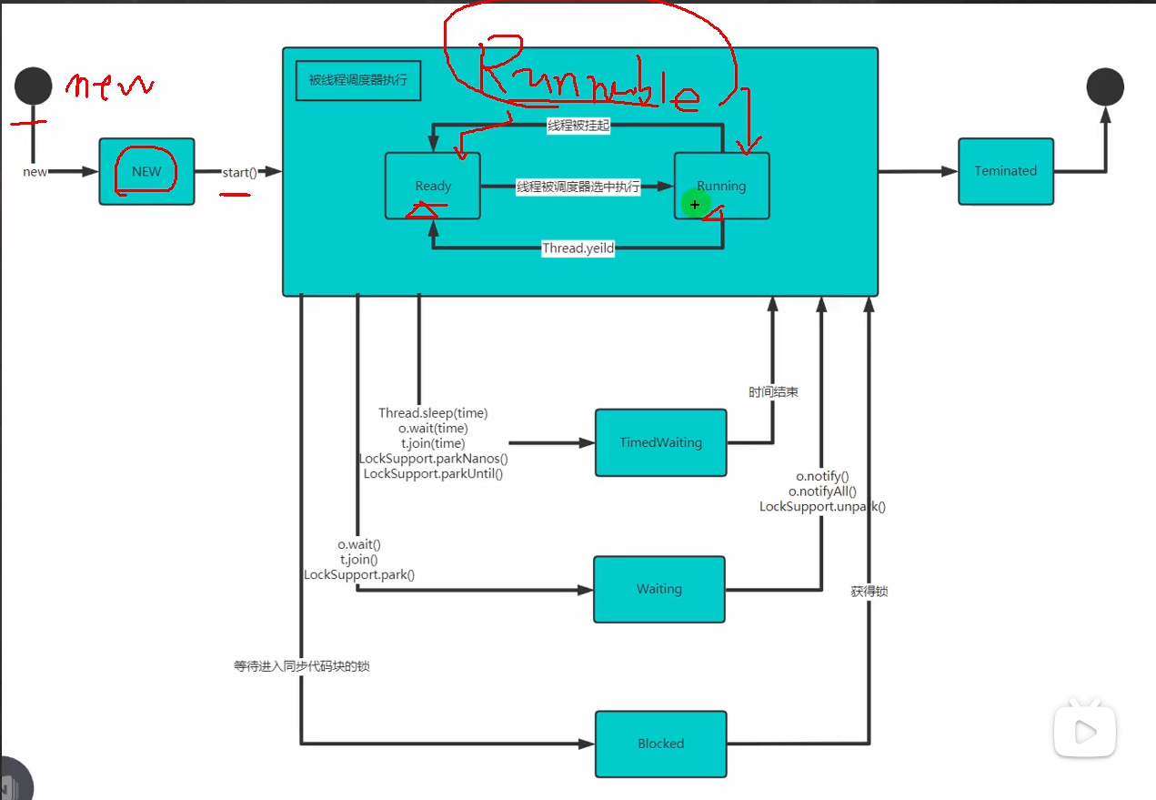 //4、争夺不到的this对象锁的就会被阻塞(blocked),准备继续下次争夺