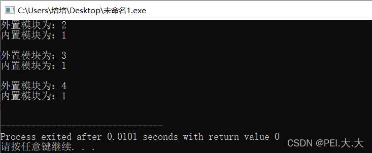 由结果显而易见:外置模块持续累加,内置模块全部为1,与static的第二种用法相比较,auto局部不断进行初始化 ,而static是局部除第一次外不再初始化。