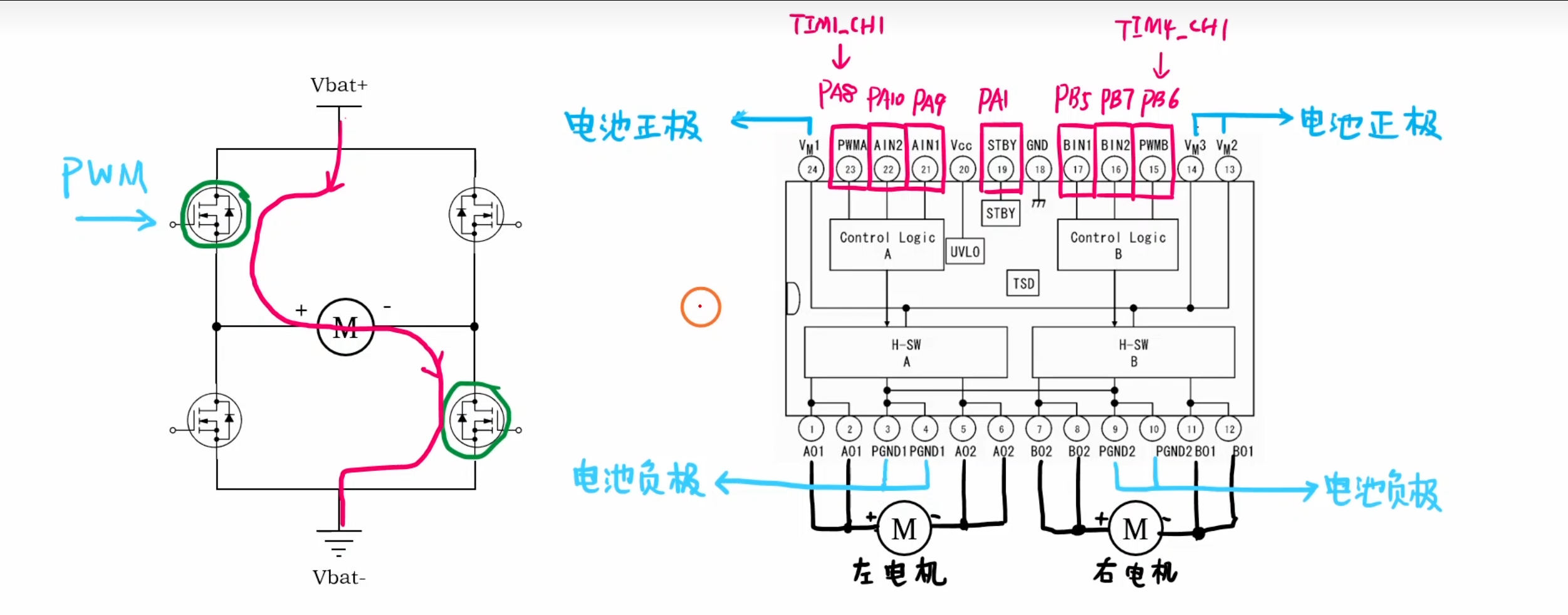 void STBY_Pin_Init(void)是一个简单的GPIO初始化,对应的口也都在电路图里可以看到,这里的代码写在App_PWM.c里,是对电机的代码。