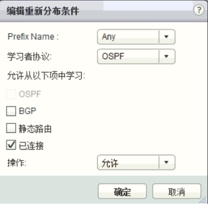 点击【路由从新分布】 , 在【路由重新分布状态】 右侧点击编辑按钮, 启用【OSPF】