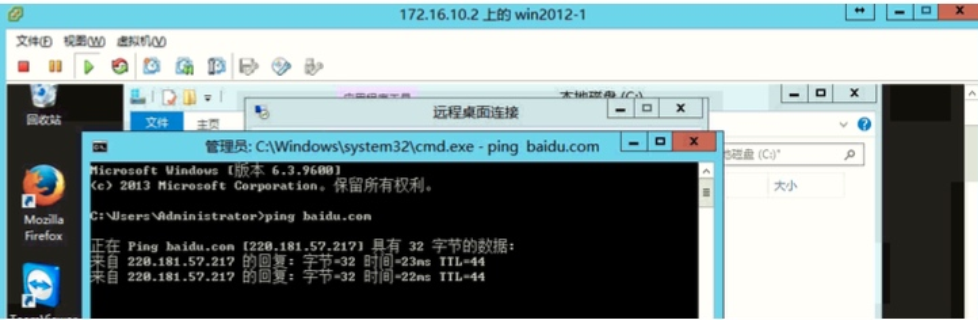 我们 ping 一下【172.16.10.1】 外网网关看看是否能够连通