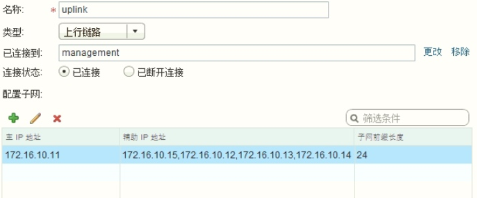 填写如下信息, 【已连接】 把 NSX 控制器连接到管理网络