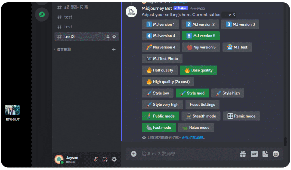 MJ test 和 MJ test photo 是 Midjourney 的测试模型。