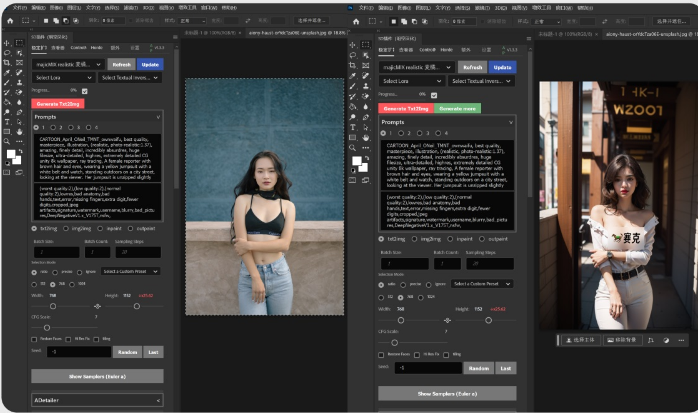 选择一个写实模型,设置正向关键词和反向关键词。
