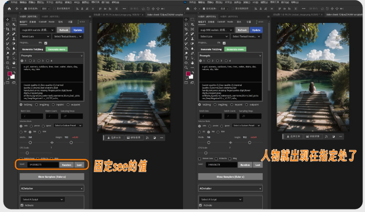 通过固定seed值,使用上述生成人物的操作再次生成,可以在画面中添加不同的元素,如车辆。