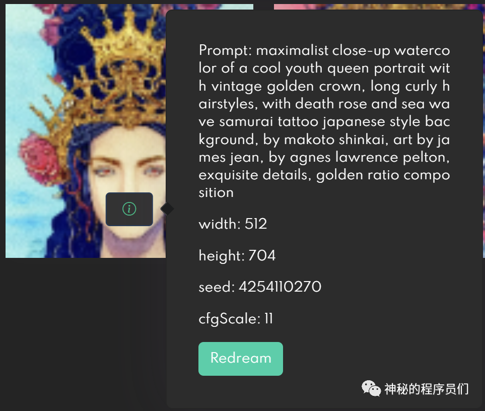 Seed:生成每张图片时的随机种子,这个种子是用来作为确定扩散初始状态的基础。所以同样的 prompt + 同样的参数设置 + 同样的种子,每次生成都会得到几乎一模一样的结果图像。如何运用种子,对于当前可玩参数较少的 SD 而言,成了最有意思的部分。