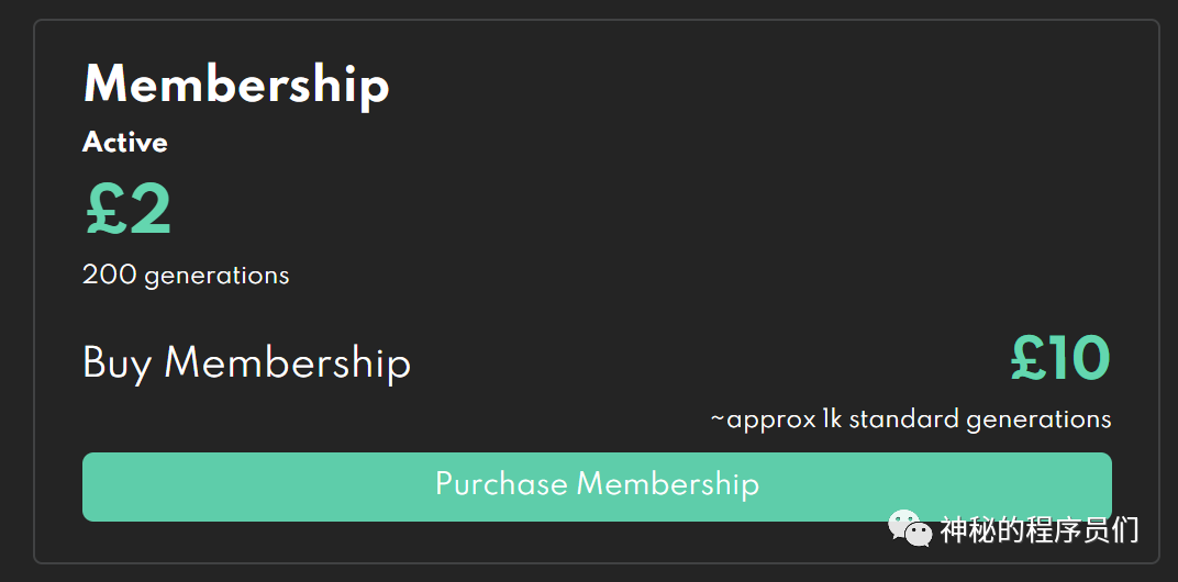 所有新注册的用户都能免费获赠价值两英镑的 200 个点数。每次标准生成耗费 1 个点数。