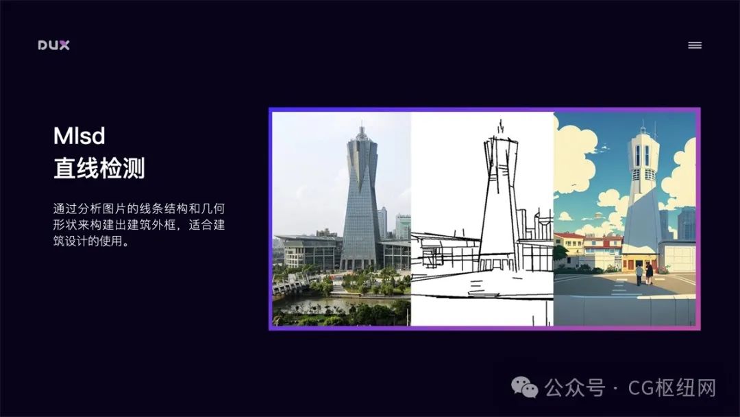 通过分析图片的线条结构和几何形状来构建出建筑外框,适合建筑设计的使用。