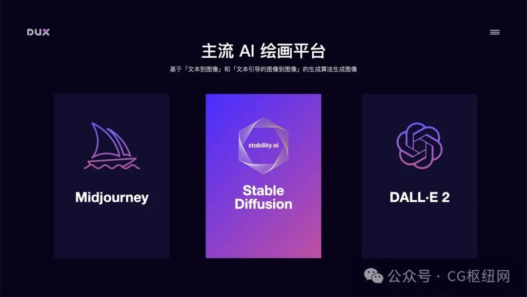 目前文生图的主流 AI 绘画平台主要有三种:Midjourney、Stable Diffusion、DALL·E。如果要在实际工作场景中应用,我更推荐 Stable Diffusion。