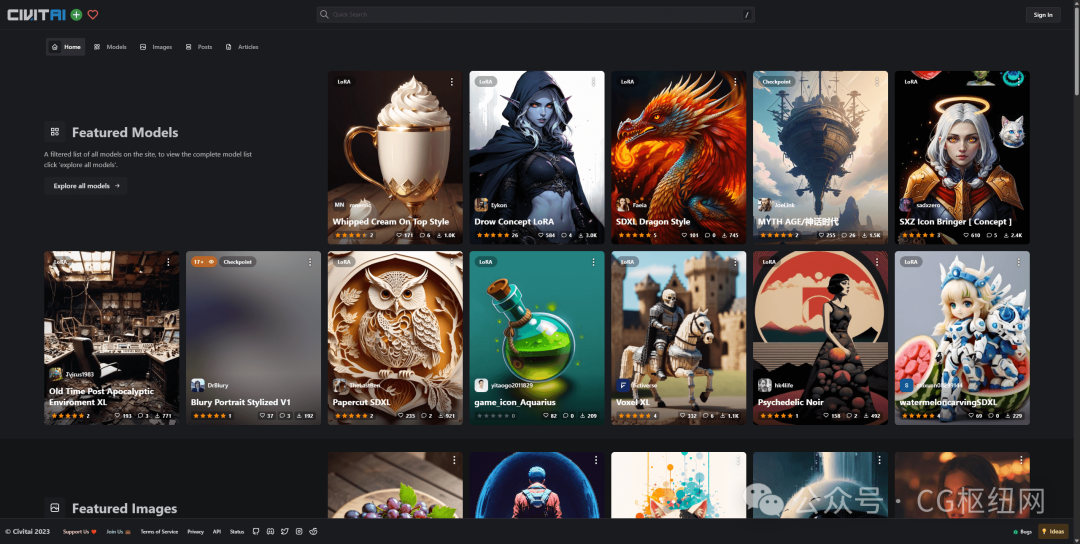 第一个肯定是大名鼎鼎的C站,拥有海量的底模和Lora。
