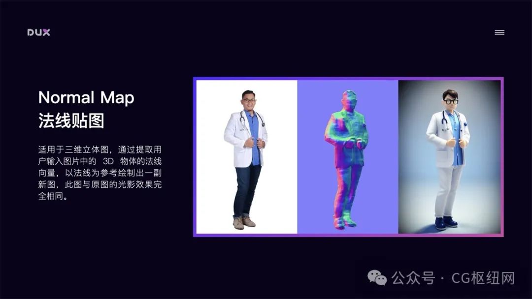 适用于三维立体图,通过提取用户输入图片中的 3D 物体的法线向量,以法线为参考绘制出一副新图,此图与原图的光影效果完全相同。