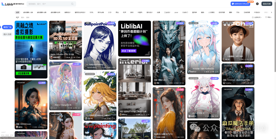 C站虽好,但需要魔法,哩布哩布AI是中国原创AI模型分享社区,许多魔法师会在C站和哩布哩布同时发布模型,因此哩布哩布AI也拥有大量的模型,足够大家使用玩耍。