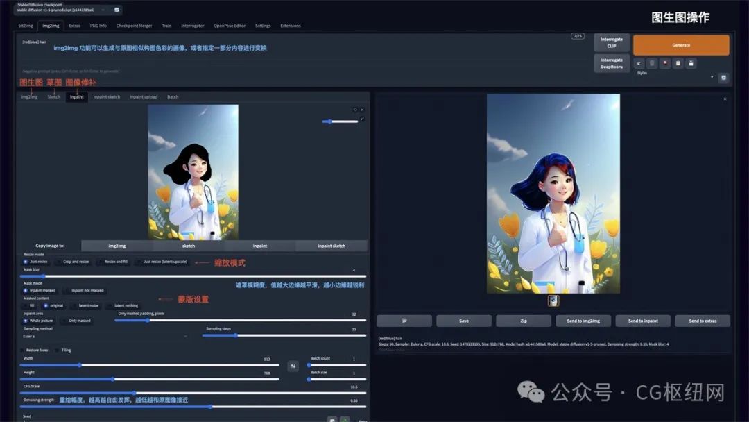 要点:图生图中的所有参数和提示词信息需要与原图生成时的参数一样,具体原图参数可以在 PNG Info 面板中查看并复制。