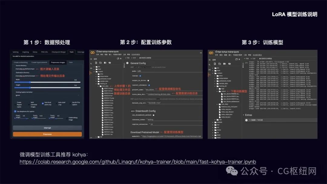 Stable Diffusion 的强大之处还在于能够自定义训练风格模型,如果现有风格无法满足要求,我们还可以自己训练特定风格模型。Stable Diffusion 支持训练大模型和微调模型。我比较推荐的是用 LoRA 模型训练方法,该方法训练速度快,模型大小适中(100MB 左右),配置要求低(8G 显存),能用极少量图片训练出风格效果。例如:下图中我用了 10 张工作中的素材图,大概花了 20 分钟时间训练出该风格的 LoRA 模型,然后使用该模型就可以生成风格类似的图片。如果将训练样本量增大,那么训练出来的风格样式会更加精确。