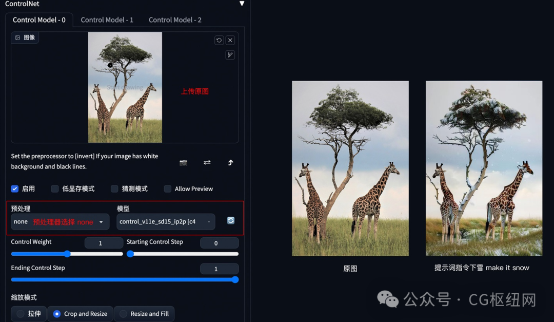 方法:通过 ControlNet 的 Pix2Pix 模型(ip2p),可以对图片进行指令式变换。