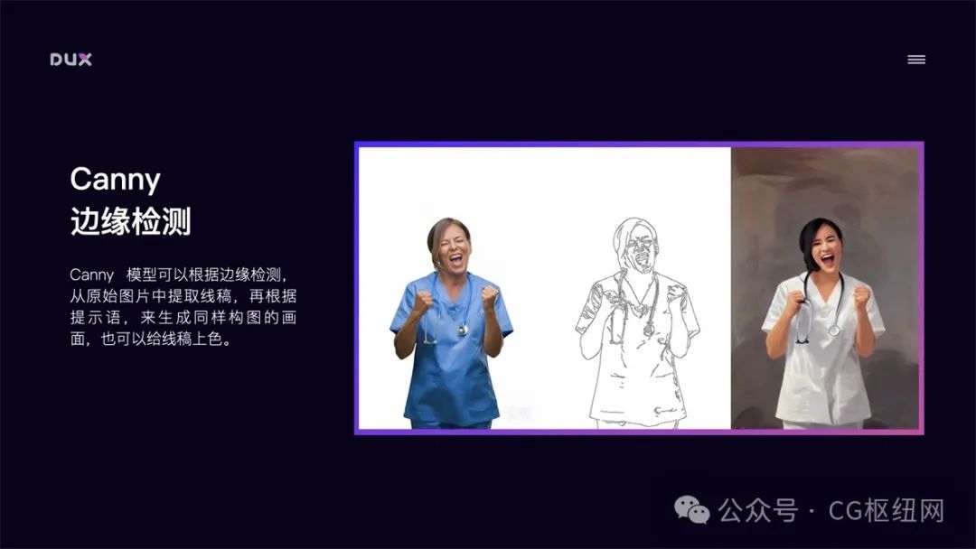 Canny 模型可以根据边缘检测,从原始图片中提取线稿,再根据提示词,来生成同样构图的画面,也可以用来给线稿上色。