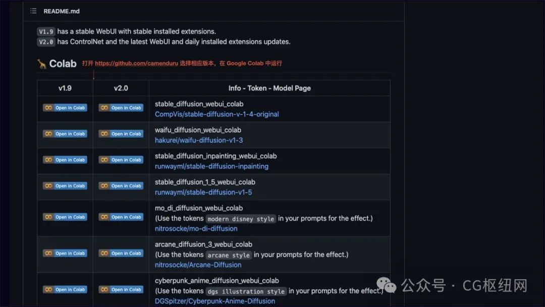 推荐两个目前比较好用的 Stable Diffusion Colab,选择相应模型版本运行即可: