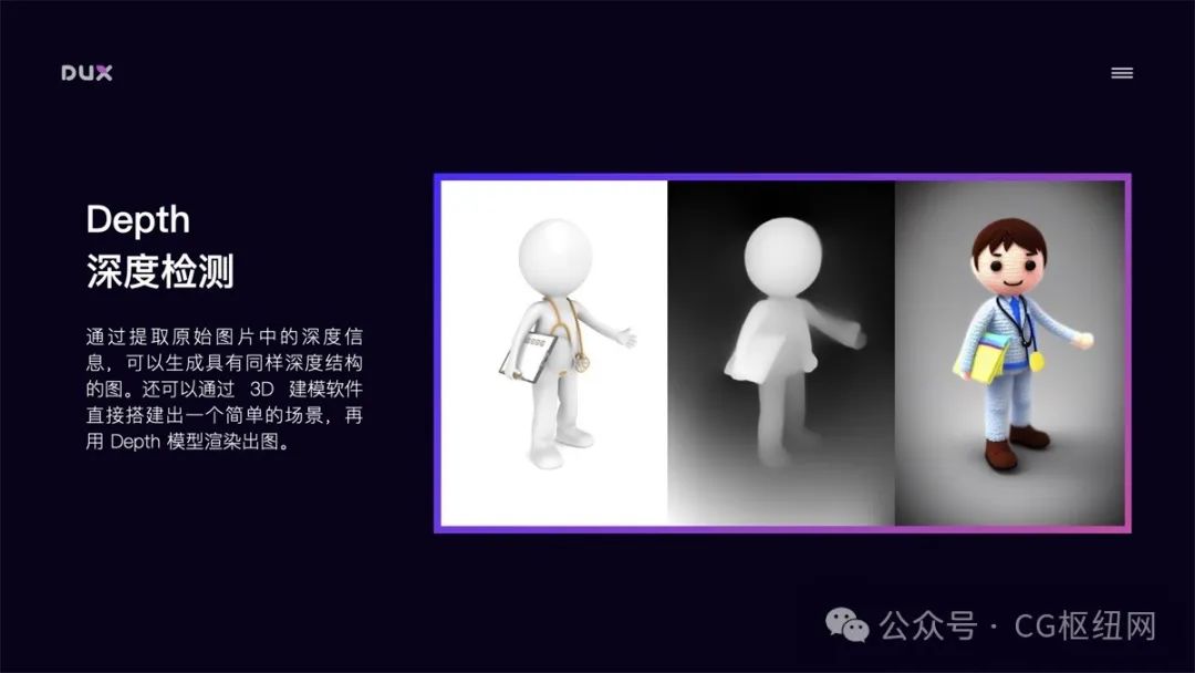 通过提取原始图片中的深度信息,可以生成具有同样深度结构的图。还可以通过 3D 建模软件直接搭建出一个简单的场景,再用 Depth 模型渲染出图。