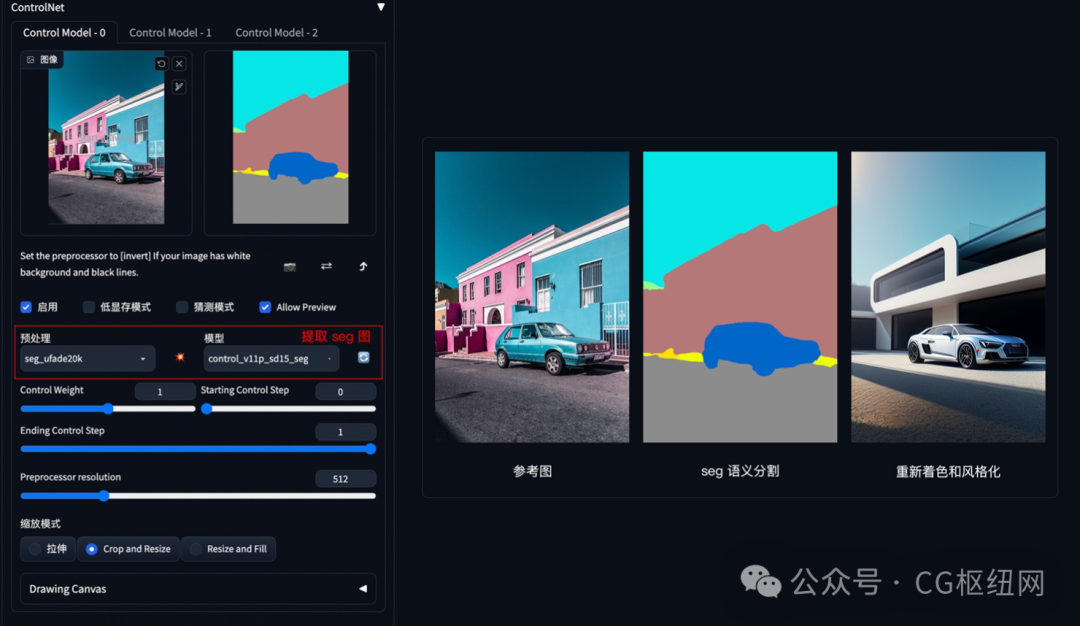 Seg 示例:(提取参考图内容和结构,再进行着色和风格化)