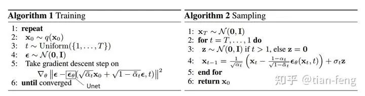 Xt-1不就是我们逆向扩散推出的公式,Xt-1=μ+σZ,均值和方差都是已知的,唯一的未知噪声Z被Unet模型预测出来,εθ这个是指已经训练好的Unet,