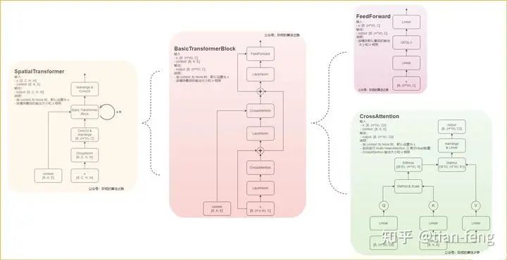 里面主要讲一下cross attention,其他都是一些维度的变换,卷积操作和各种归一化Group Norm,Layer norm,