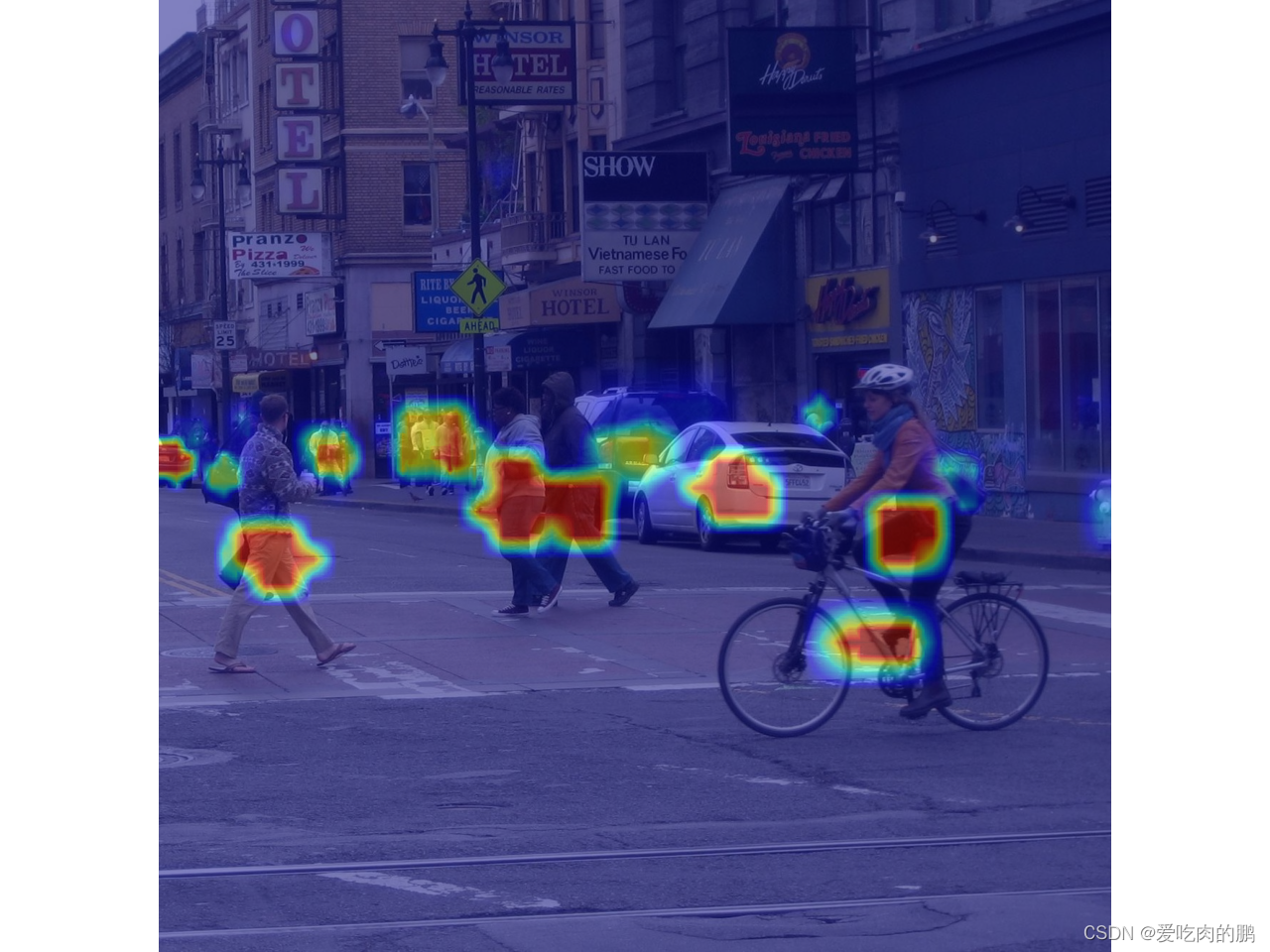 注意:这里的热力图和上面的可视化不一样,上面的可视化是可以对YOLOX中任意卷积层进行可视化,增强网络的可解释能力。而这里的热力图是可以看网络最终的输出。