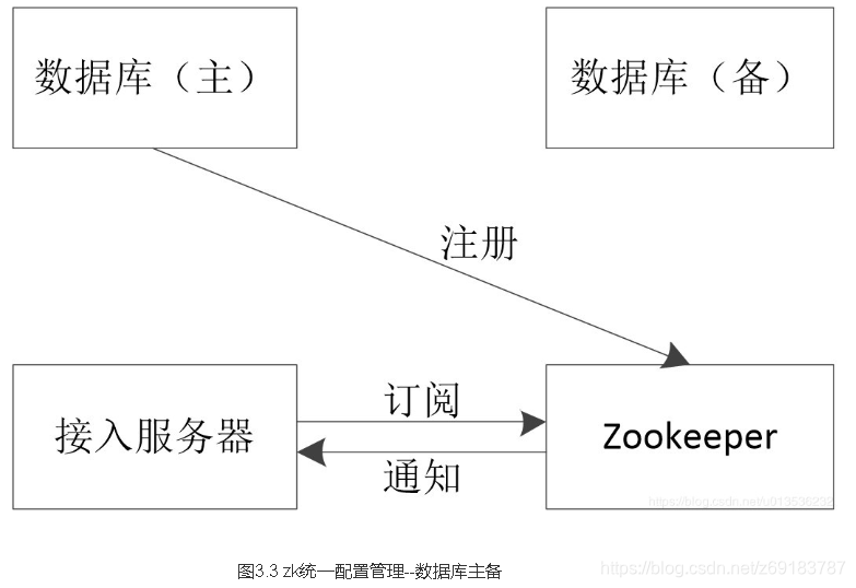 在集群中环境的服务中,同一个程序会分布在多台机器上运行,便于横向扩展。个程序一般都会需要一些配置信息,如果程序分散部署在多台机器上,要逐个改变配置就变得很困难。同时,目前各种分布式系统以及微服务的流行,如何有效管理不同组件的配置也是一项重要的问题。现在可以在zk上创建一个节点,将配置信息作为节点的值。然后相关的应用程序都监听这个节点。当节点中的数据发生变化时,zk就会通知这些监听的程序说:“有东西改变了”。这些监听者就会自动到zk上获取更改后的配置信息,接着后面如何处理就看具体的业务逻辑了。 其实这是用到了zk的watcher机制,也就是发布/订阅机制,客户端可以向zookeeper服务器注册watcher,订阅自己感兴趣的节点,当相应的节点发生变化时,zookeeper服务器就会向客户端发布通知。 类似的场景还会用在服务高可用中,比如有两台数据库服务器,一主一备。