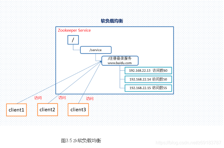 每个到服务列表下注册的服务节点,相应的znode下的数据会保存服务地址,以及当前处理的访问数。当客户端来获取服务列表时,可以根据访问数选择比较少的一个服务节点进行请求的分发。达到一定的负载均衡的作用。