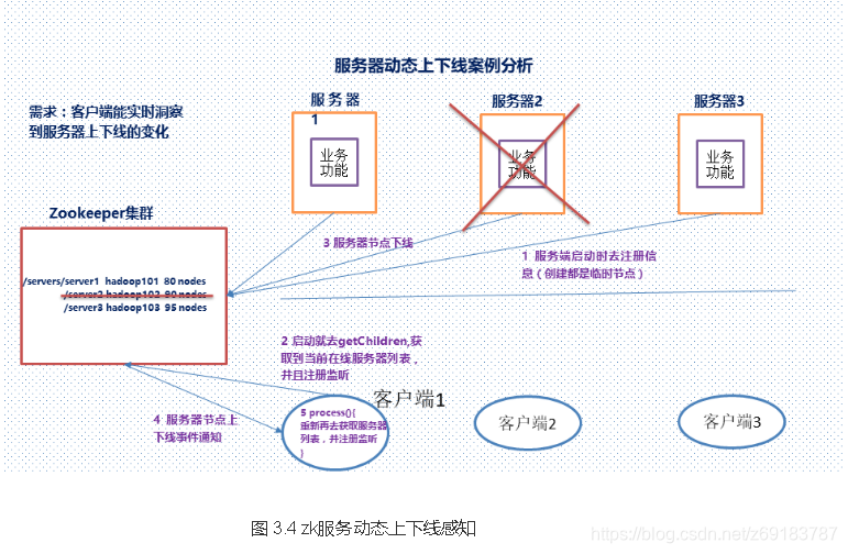 对于一些复杂的分布式系统来说,系统中不同的组件非常多,即不同的服务很多。同一服务中还存在多台并发处理的服务器。那么如何知道这些服务哪些是可用的,哪些是不可用的呢?这就得用到zk了。 当服务上线时,会创建zkclient,并和zk保持持久会话,然后在zk的特定特定目录下创建一个临时znode(会话一断开,znode就消失)。而需要访问这些服务的客户端,就会监听在这个目录下(watcher机制),通过 getChildren() 这个api监听。当目录下的节点发生变化时,就意味着那些服务有下线或者上线了。这时候zk就会通知监听(订阅)该节点的客户端来获取最新的可用的服务列表。这样就可以动态上下线可用的服务。