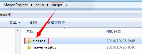 编译成功之后,可以看到hello项目的根目录下多了一个【target】文件夹,这个文件夹就是编译成功之后Maven帮我们生成的文件夹,如下图所示: