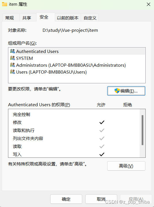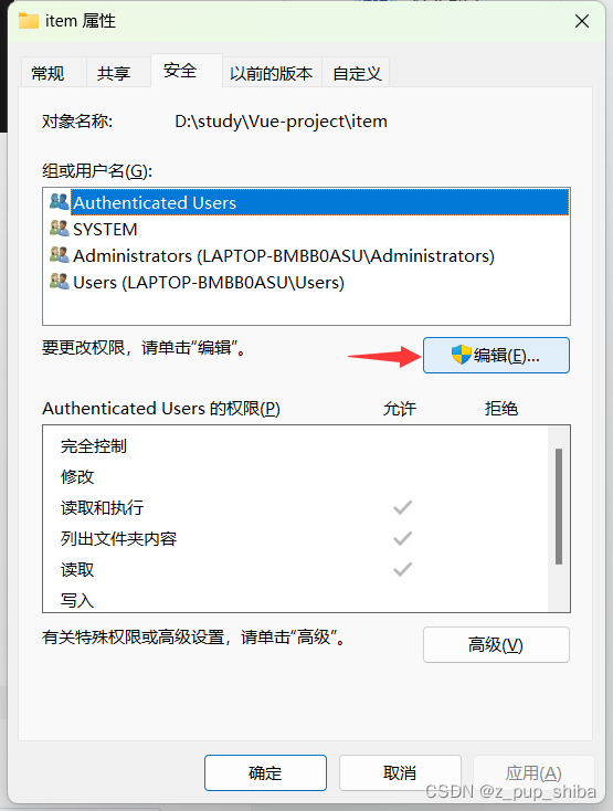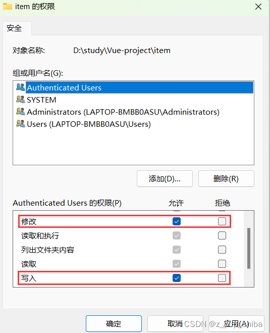 右击项目文件➡属性➡安全➡点击编辑➡单击Authenticated Users或Users将修改与写入改为允许(与图中红框线一致)➡点击确认➡重新用编辑器打开项目运行