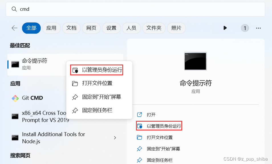 左下角搜索输入cmd,以管理员身份运行,之后再重复一遍你们找的教程就行了(记得更换路径)