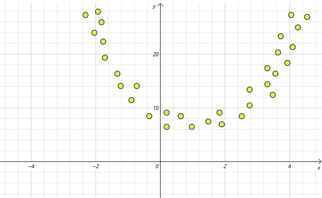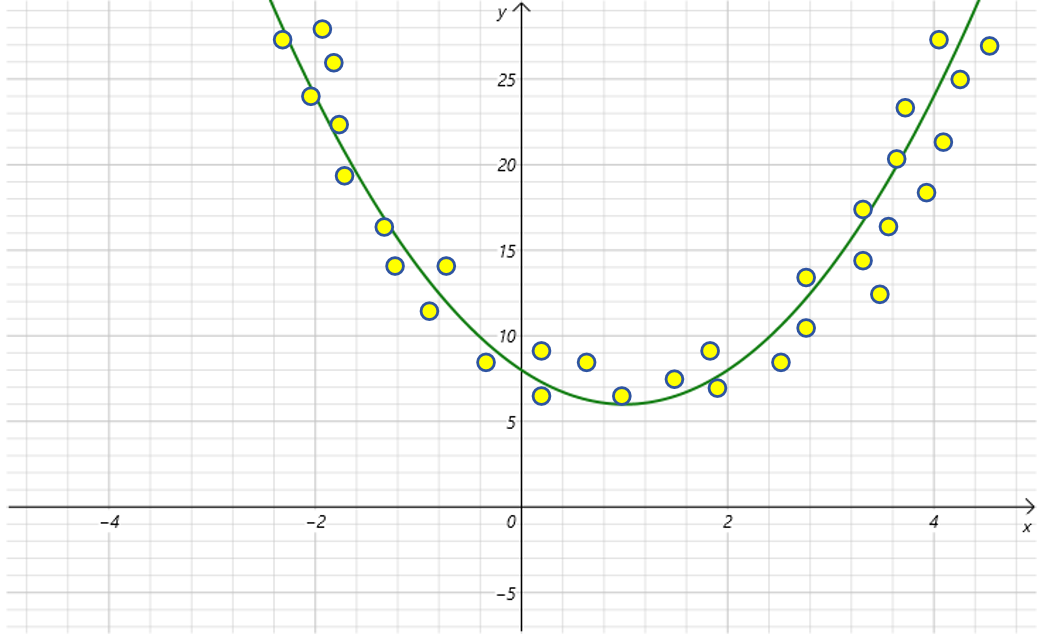 如果把上图看做feature是x,label是y,那么确实不能用一个直线来拟合x和y之间的关系。通过观察图像,我们知道这个图像符合一元二次函数的图像。也就是说要拟合这个曲线,我们的假设函数应该是如下形式: