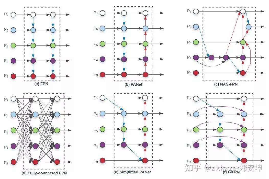 检测中各种融合不同scale的方法,bifpn取得了性能和速度的最好平衡