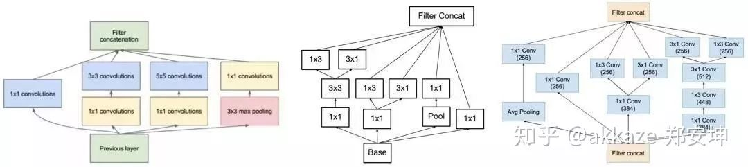 各种inception结构,尤其是后面两种,使用空间分离卷积,计算量小且性能好