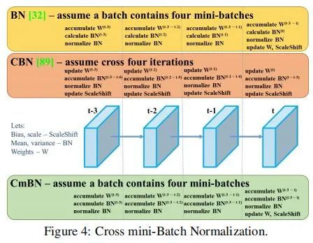 CmBN为CBN的修改版,定义为Cross mini-Batch Normalization(CmBN),它仅仅在一个batch之中收集小批量统计信息。