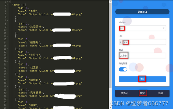 请求方式 --> 接口名称 --> 对接口功能的描述 --> 更新