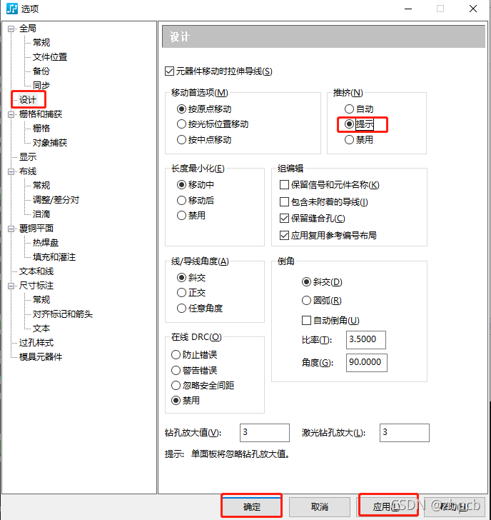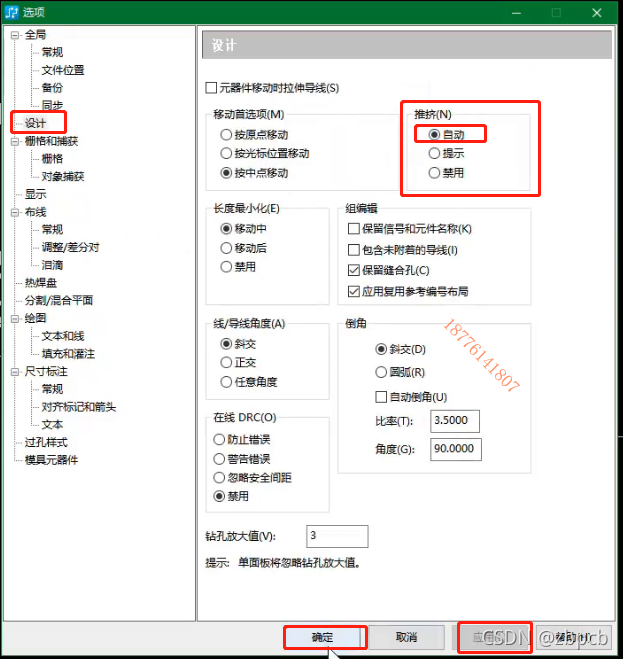 元件推挤功能往往使用在PCB布局上,通过设置推挤功能可以在布局的时候灵活调整器件的位置,以便优化整体布局效果。那如何使用推挤功能?打开PADS layout 界面,点击“工具”→“选项”(快捷方式:Ctrl+Enter),选择“设计”窗口中“推挤”下的“自动”,点击“应用”并“确定”。此时移动单个器件时,根据是否达到间距的要求,发生推挤。操作如下图所示: