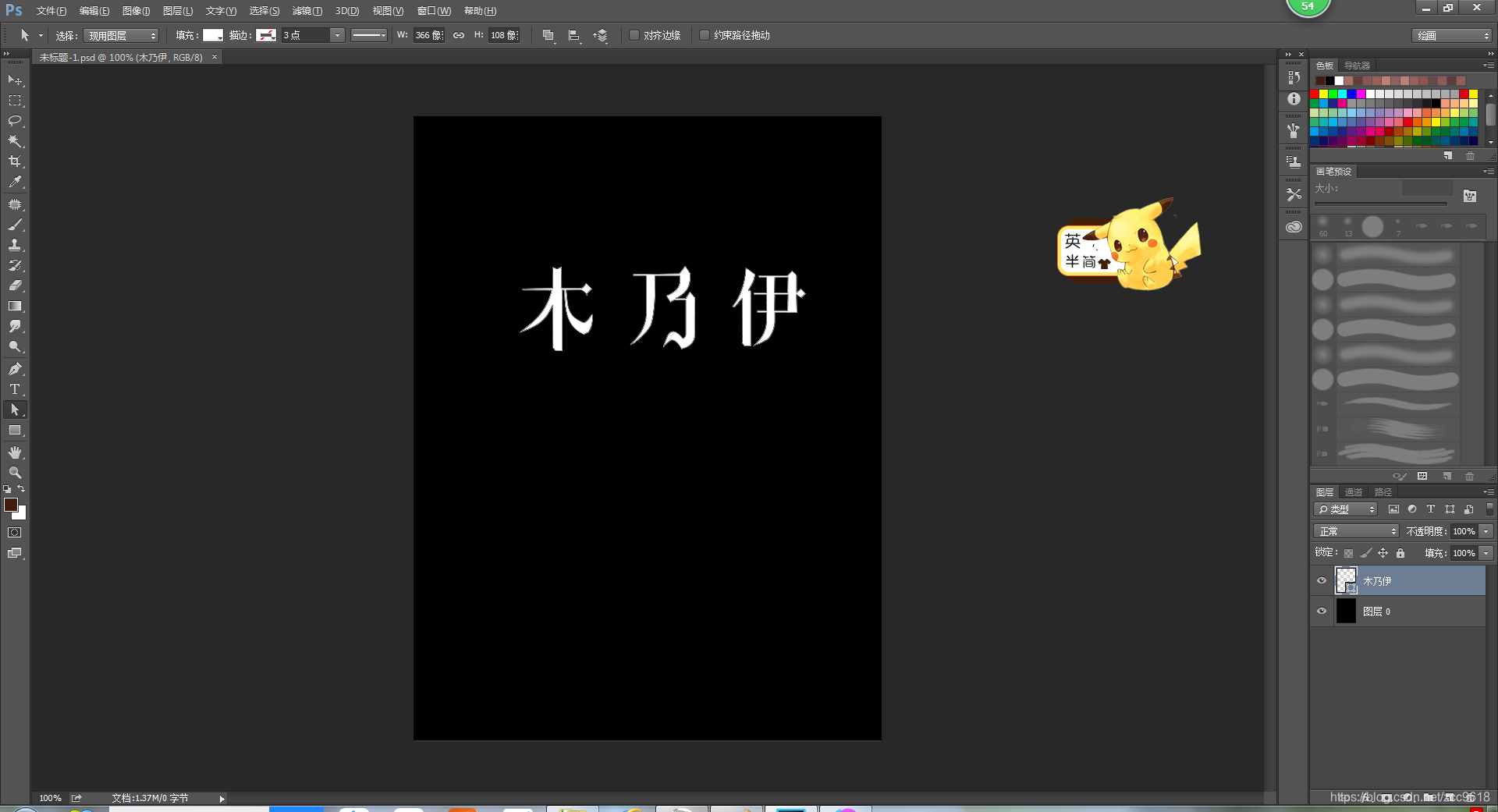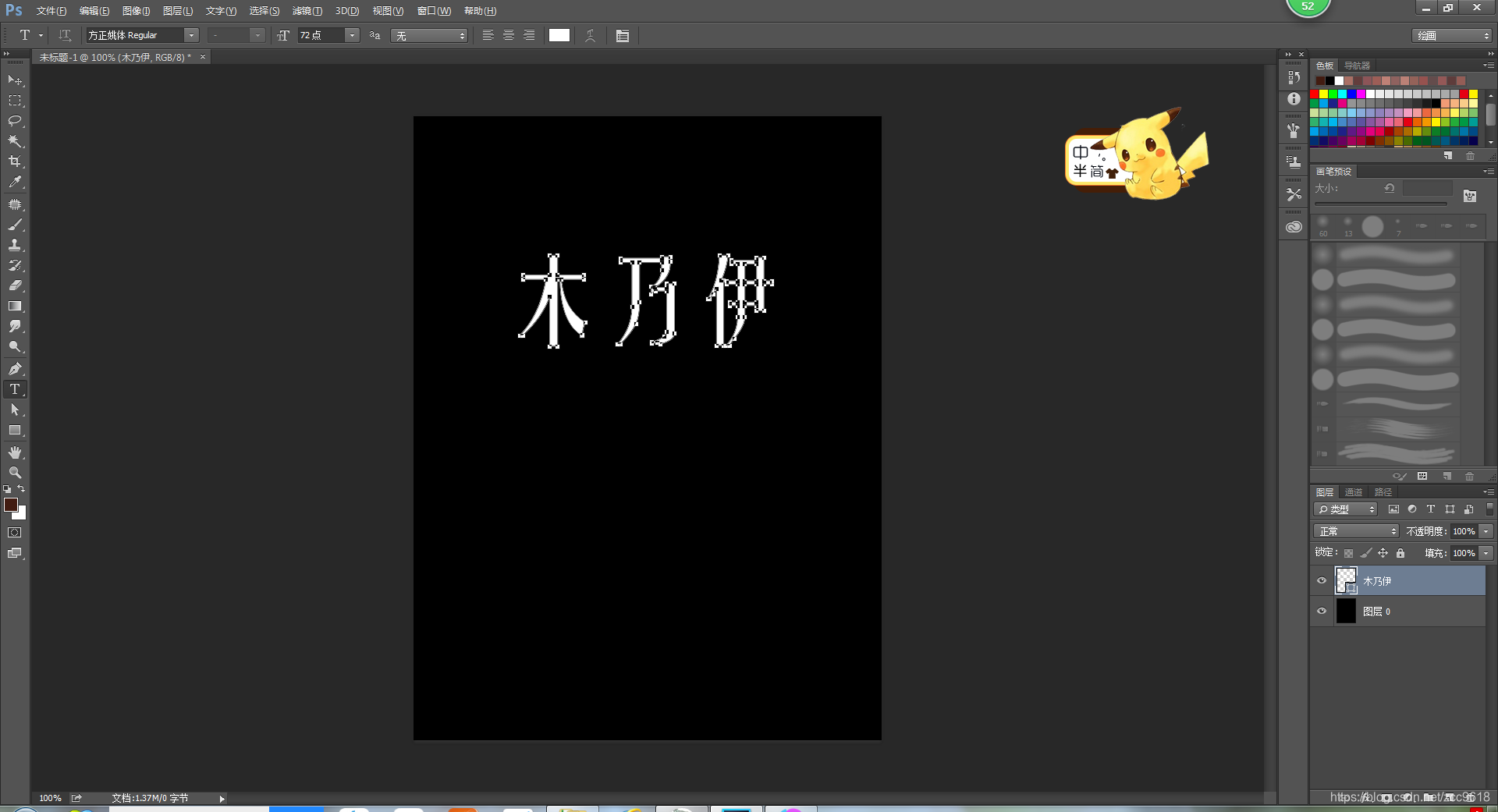 。背景填充为黑色,选择字体(黑底白字),图层右击转换为形状