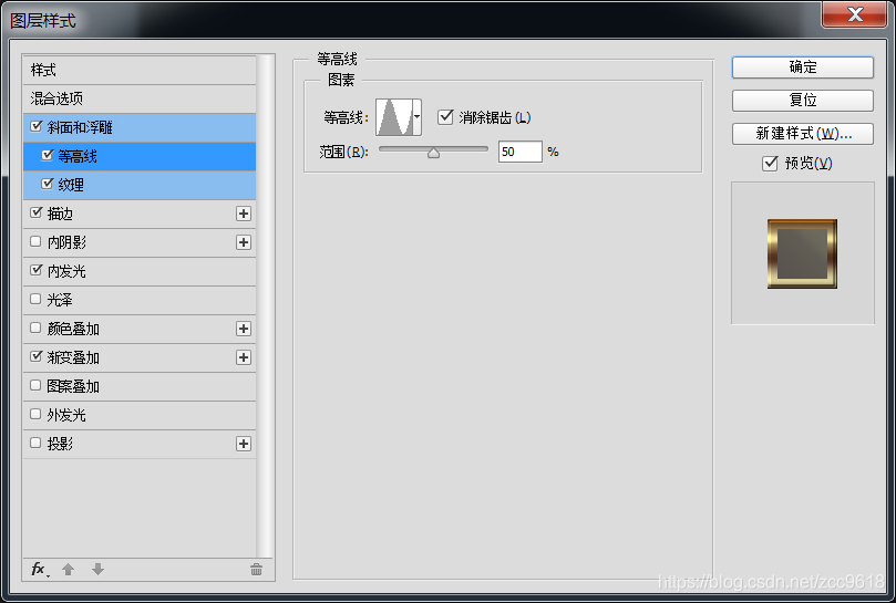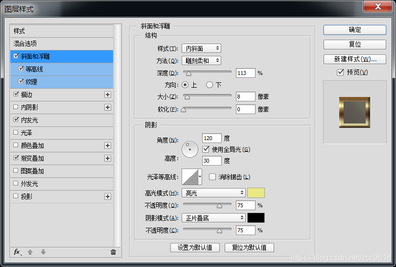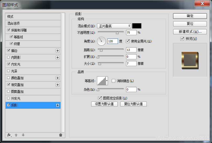 。调整复制图层的图层样式,复制图层在下方