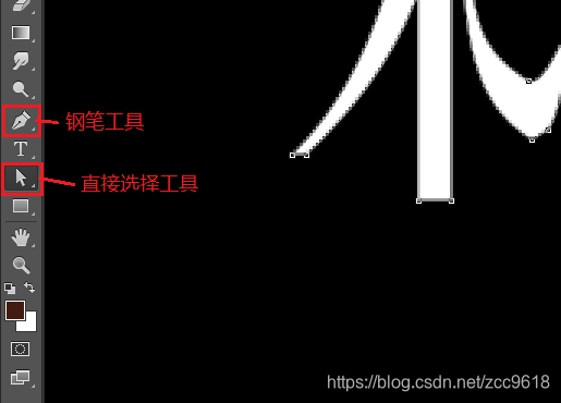 。选择 “直接选择工具” , shift+单击 选择字体,调整字体形状(用 “钢笔工具” 可增加锚点)