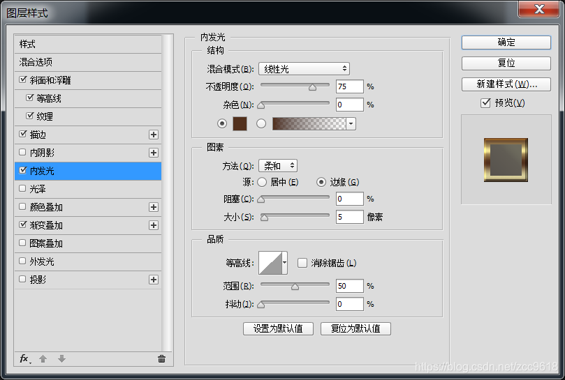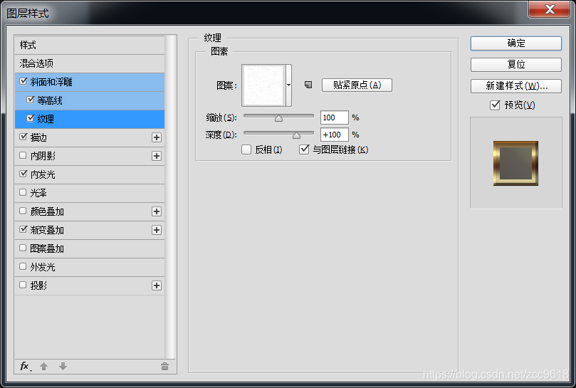 。栅格化图层,复制图层,调整图层样式,并调整参数至合适